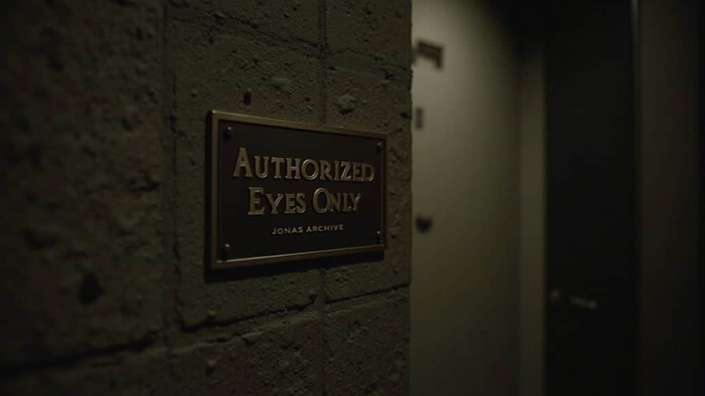 Above the door hung a plaque: “Authorized Eyes Only – Jonas Archive.” His hand hesitated before gripping the wheel. It resisted at first, then groaned in protest as he turned it.